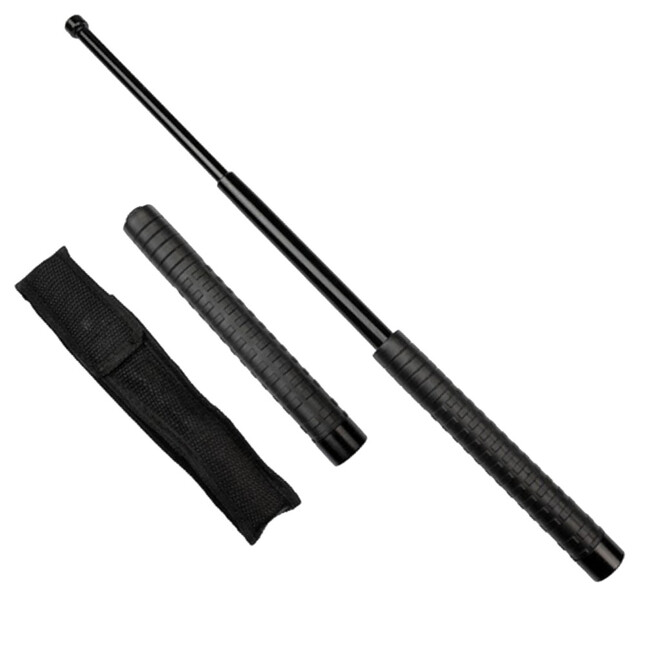 Składana pałka teleskopowa typu baton o długości 21"z kaburą, zalicza się do najpopularniejszego modelu pałki o skutecznym zasięgu, przeznaczonym do samoobrony, czy też treningów sztuk walki. Znajdzie również swoje zastosowanie w profesjonalnym użytku przez służby mundurowe oraz agencje ochrony. Powierzchnia elementów rozkładanych pałki jest chromowana na czarno, dzięki czemu elementy te są odporne na otarcia spowodowane składaniem pałki jak i również uszkodzenia powstałe podczas uderzenia. Rękojeść wykonano z gumy antypoślizgowej co daje pewny chwyt. Oferowana pałka nie jest tanią podróbką tylko porządnym produktem do samoobrony lub ćwiczeń. Kaburę mocowaną do pasa za pomocą szlufki, wykonano z grubej i wytrzymałej cordury w kolorze czarnym. Wysoka jakość!