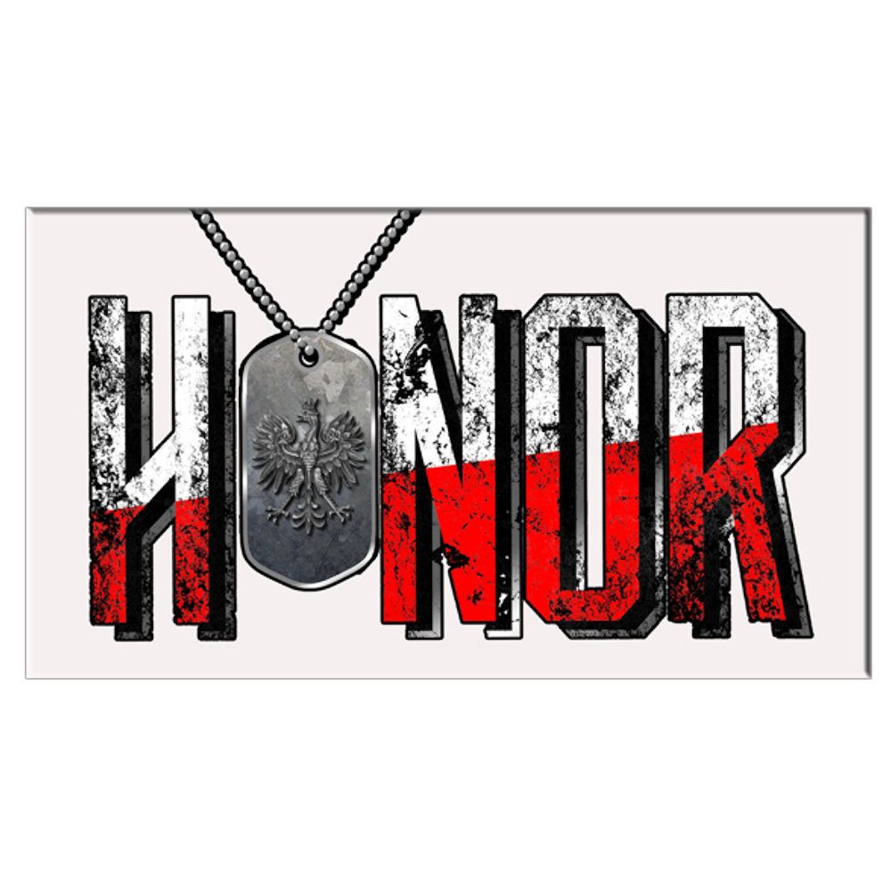 Magnes patriotyczny Honor, nieśmiertelnik. Propozycja dla osób kolekcjonujących gadżety w postaci magnesów na lodówkę. Wymiary: szerokość: 5,5cm, wysokość: 9,5cm. Polska produkcja